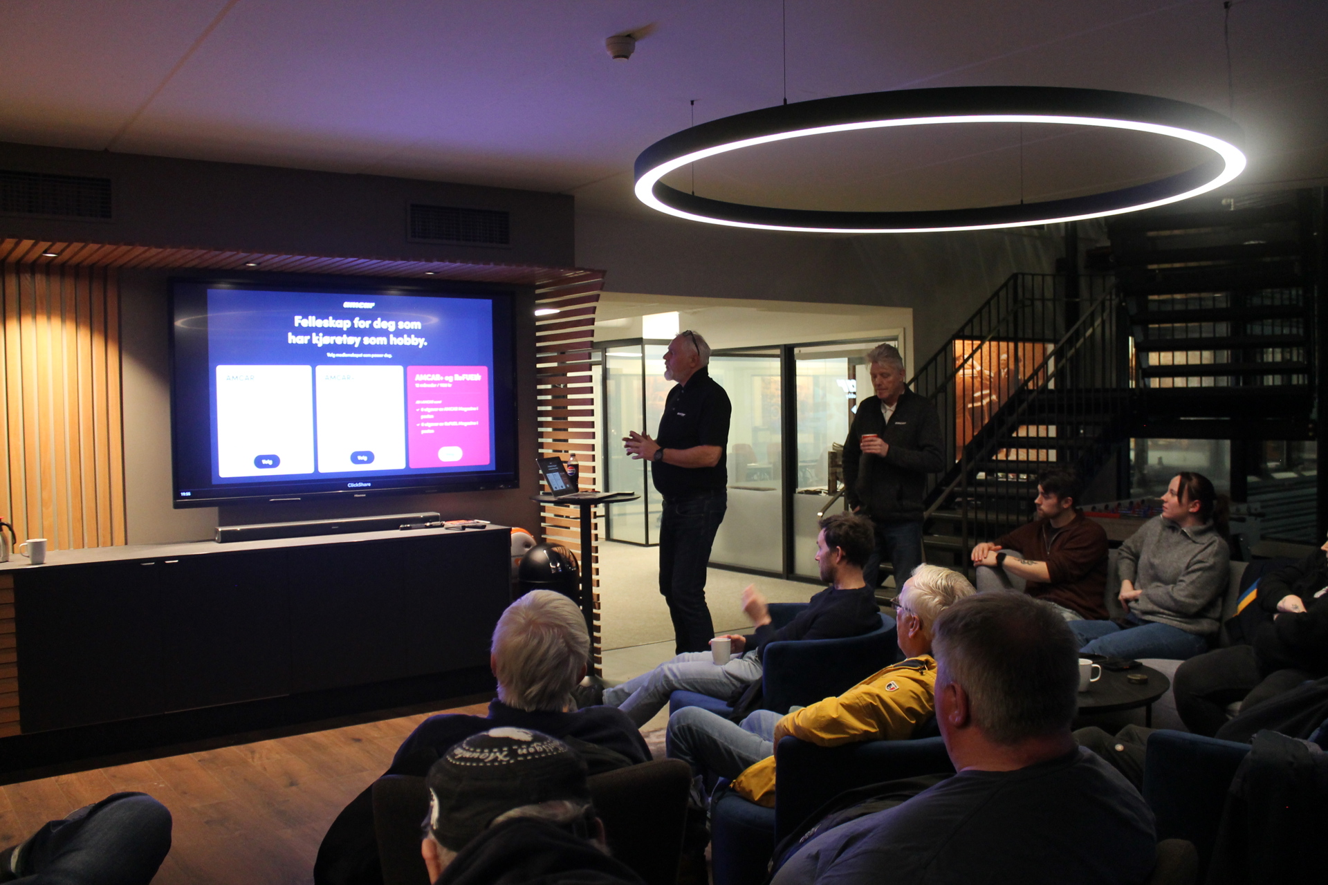 Nyttårstreffet til Saabklubben Trøndelag ble arrangert hos Amcar, og i deres hovedkvarter på Tiller i Trondheim. Vi fikk god informasjon om Amcar sitt arbeid, og fikk omvising. 11 biler møtte opp (9 av dem var Saab) og cirka 24 personer stilte opp på treffet. Vi takker Asbjørn og Bjarne fra Amcar, for ei fin omvisning og innholdsrikt foredrag. Bildene er tatt av: Ida Florholmen og Ture Samuel Heia